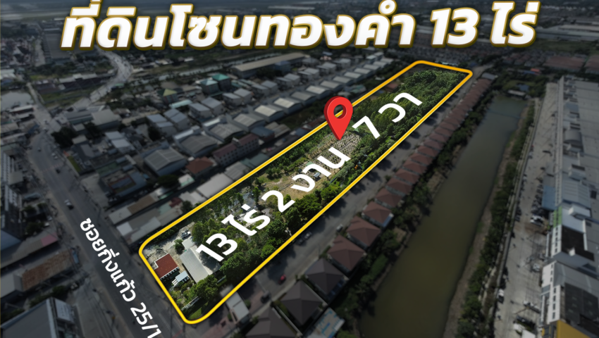 ขายที่ดินทำเลทอง ซอยกิ่งแก้ว 25/1 – ใกล้นิคมเจโม – หน้ากว้าง 47 เมตร – 13 ไร่ 2 งาน 7 วา
